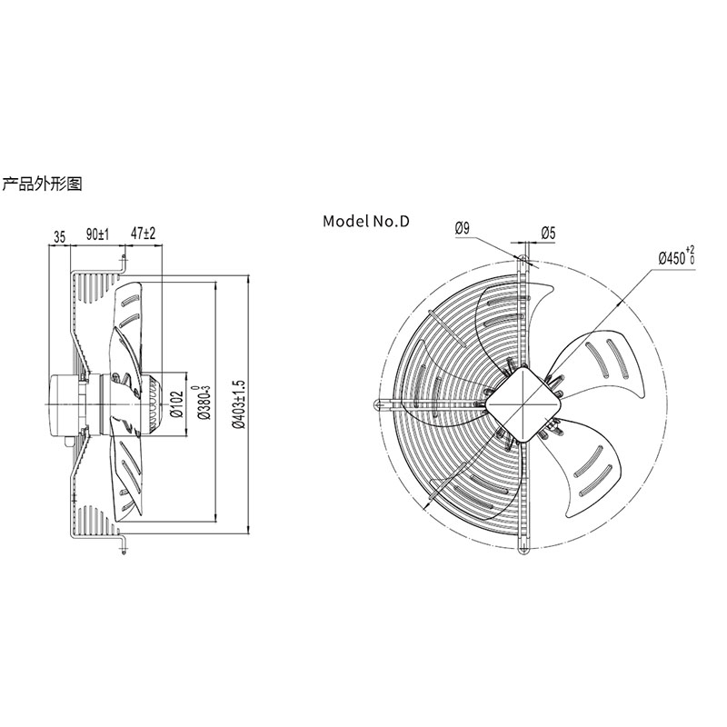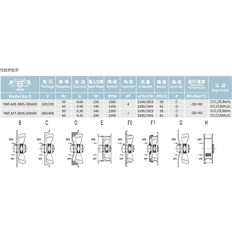 • YWF.A4S-400S-5DIA00冷凝器冷干機蒸發器電機冷卻外轉