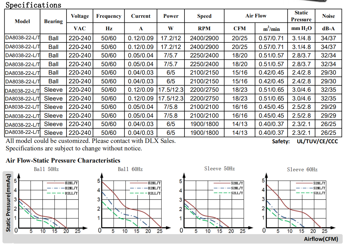 80 x 80 x 38mm DA8038 115/220V軸流風機現貨,可定制OEM,8厘米風扇